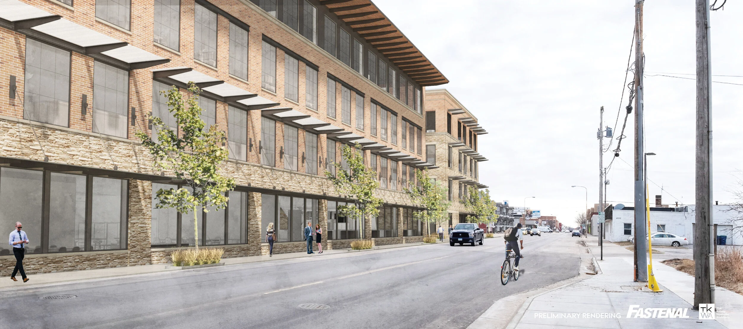 The Fastenal Riverfront Building is a 100,000 sf, 4-story, Mass Timber (Glulam/CLT) commercial office building that will accommodate anywhere from 400-600 employees. Locally sourced materials, occupant wellness strategies, and urban edge planning drove the design along with maximizing nature views to the Mississippi River and providing walkable access to downtown Winona, MN. (Renderings produced while at TKWA)