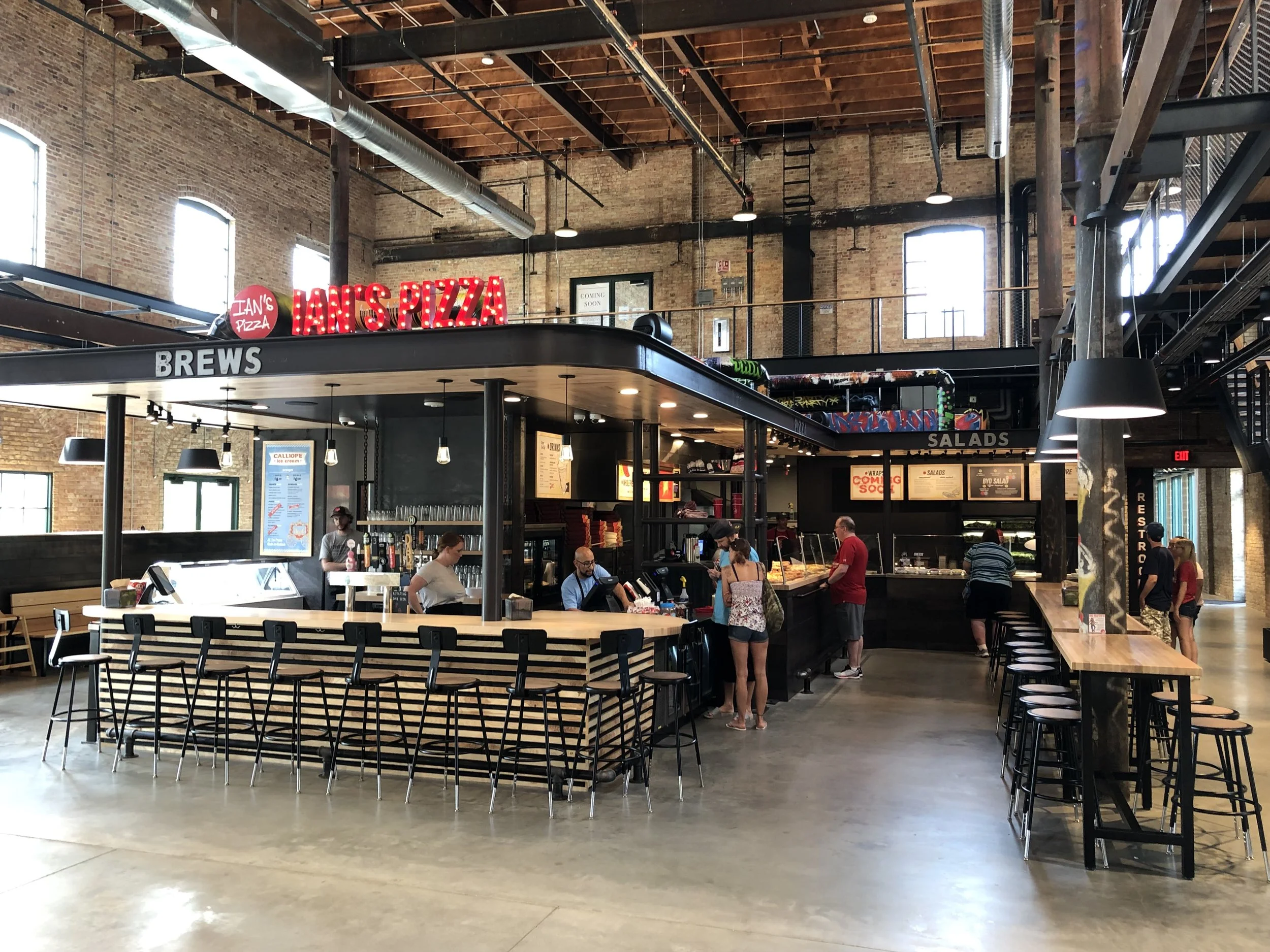 MERIT AWARD FOR DESIGN : Garver Feed Mill, Madison, core and shell designed by SmithGroup, Madison and Phoenix, and tenant improvements designed by The Kubala Washatko Architects, Cedarburg. A redeveloped former feed mill and sugar beet factory that is now a destination for foodies and health and wellness enthusiasts